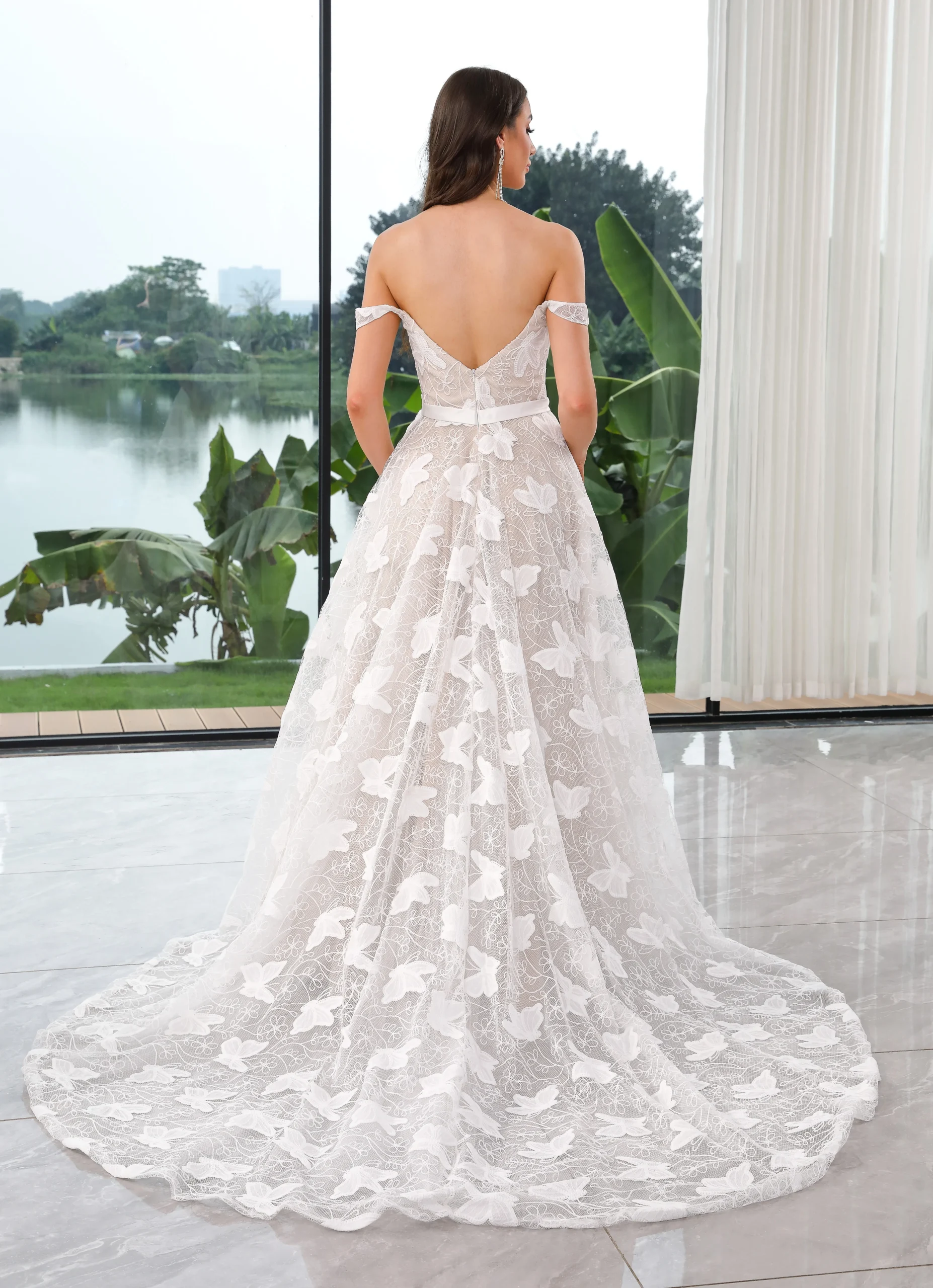 Vestido de novia inigualable, lleno de delicada textura y especialmente romántico, perfecto para una novia que sueña con una boda digna de un cuento de hadas.